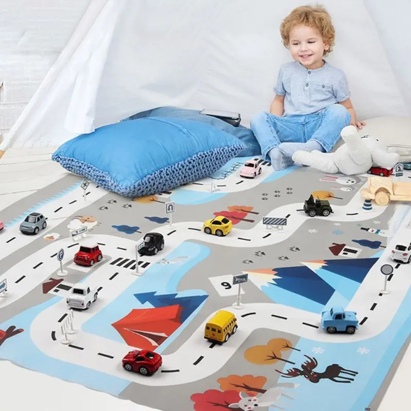 OOTDTY Kids Game Pad Toy Simulation Police Fire Military Engineering Test Car Scene Map Children Play Mat