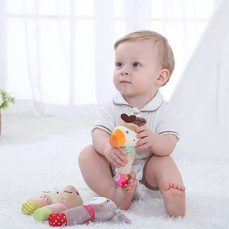 | Baby Rattle Cartoon Toys Handbell Baby Plush Developing Toys for Newborns Baby Toddler Toys Cartoon Animals BB Squeaker Rattles |