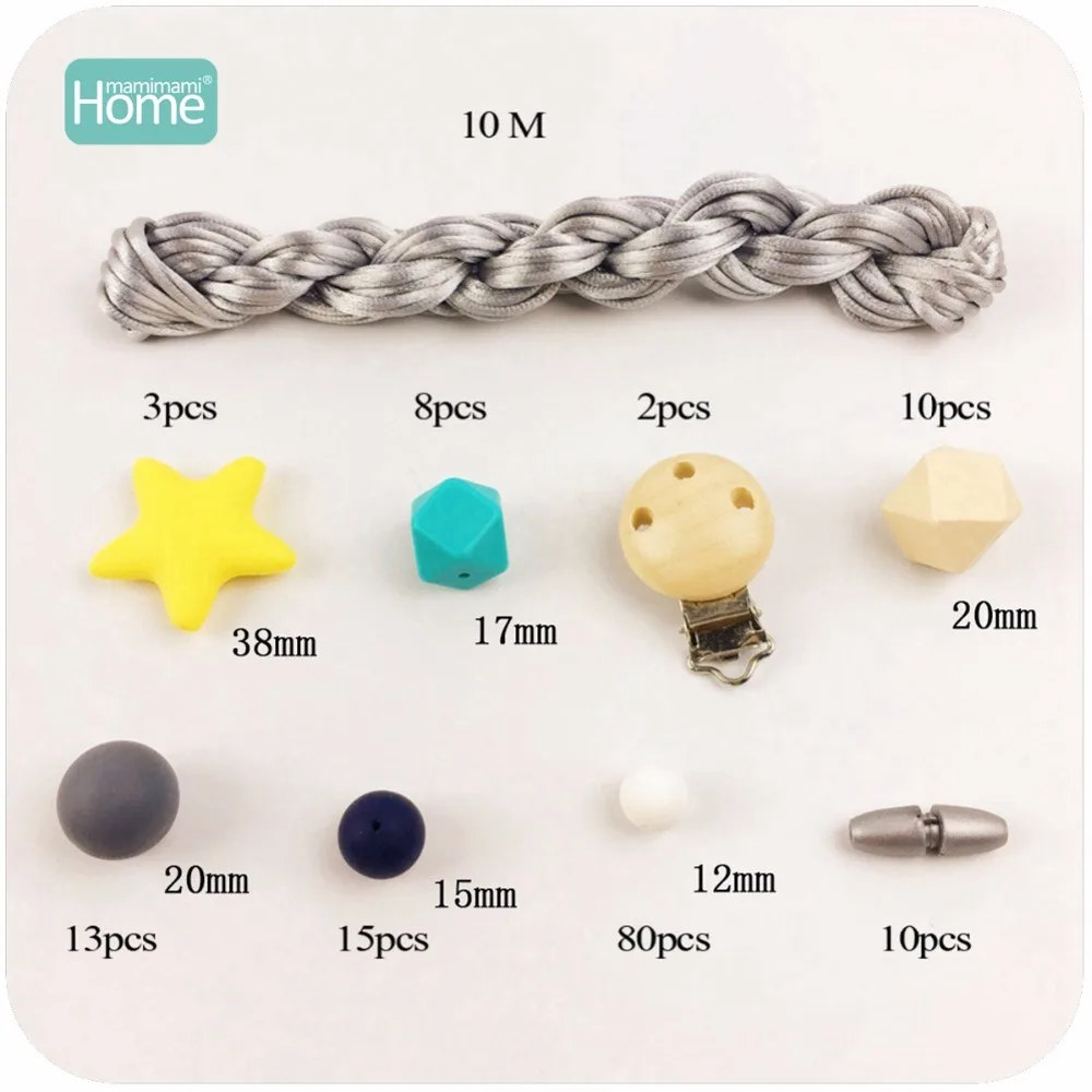 | MamimamiHome Silicone Teething Beads Set Wooden Beads Hexgeometric Baby DIY Stars Silicone Nursing Pacifier Clips Drawing Toy |